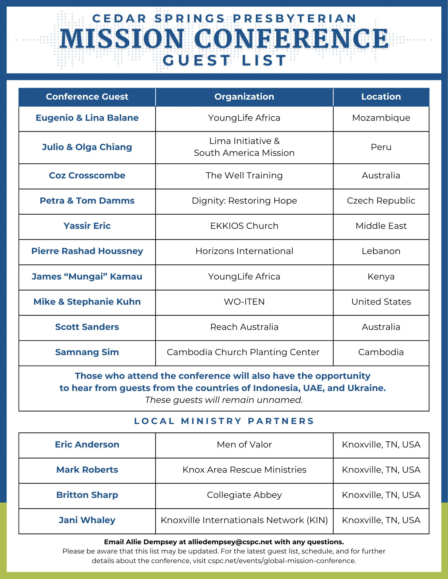 The mission ministry is in year three of the 20:25:30 Mission Initiative, aimed at establishing and fortifying as many churches as possible by 2030. This year the focus again is on the 20:25:30 Initiative and celebrating the stories, featuring guests from around the globe that will highlight the efforts being made in global mission. Join us as we hear inspiring stories of God’s work within the global church.